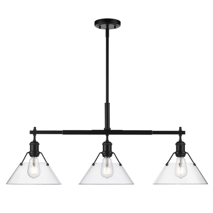 This Orwell 3-Light Linear Pendant in Matte Black is manufacturered by Golden Lighting- Measures 14.5"H x 10.00" L x 35.75" W