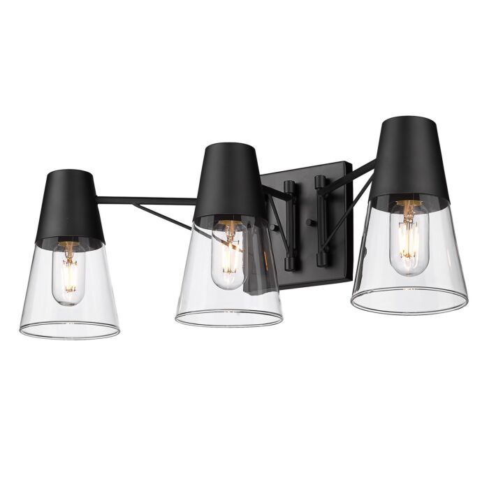 Ryker Three Light Bath Vanity in Matte Black by Golden