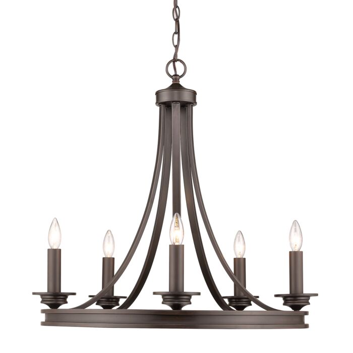 This Saldano 5-Light Chandelier in Rubbed Bronze is manufacturered by Golden Lighting- Measures 26"H x 27.50" L x 27.50" W