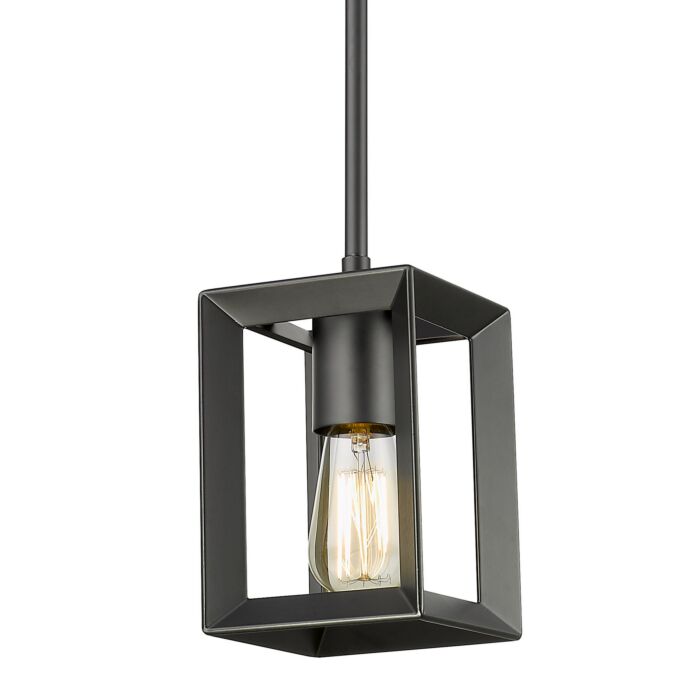This Smyth 1-Light Mini Pendant in Matte Black is manufacturered by Golden Lighting- Measures 11"H x 5.00" L x 5.00" W