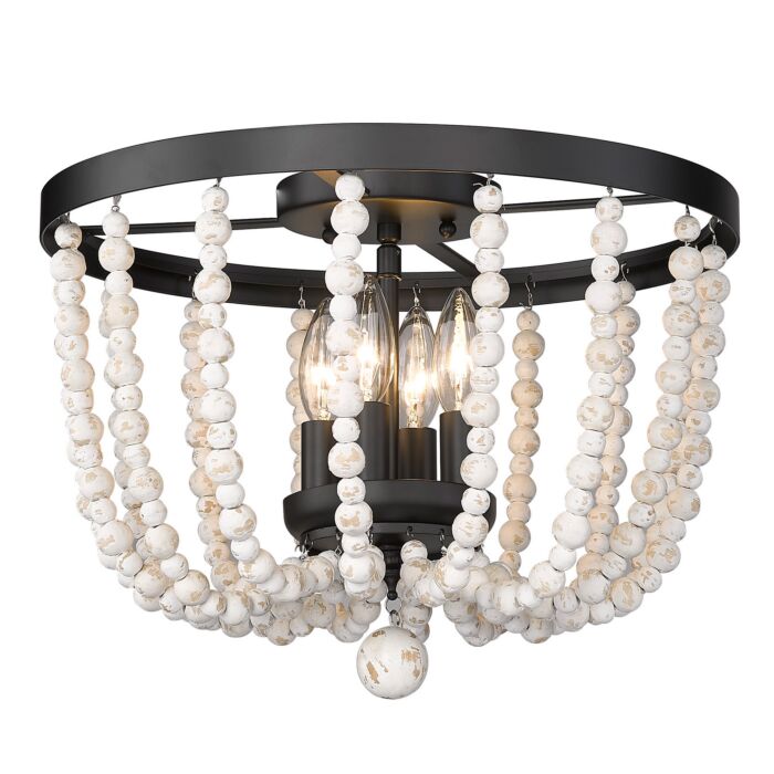 Illuminate your space with the Transitional, Farmhouse, Restoration Four Light Flush Mount ,a beautiful product designed by a visionary brand like Golden, exclusive piece from Tabitha, curated collection, finishing the product with a elegant Matte Black