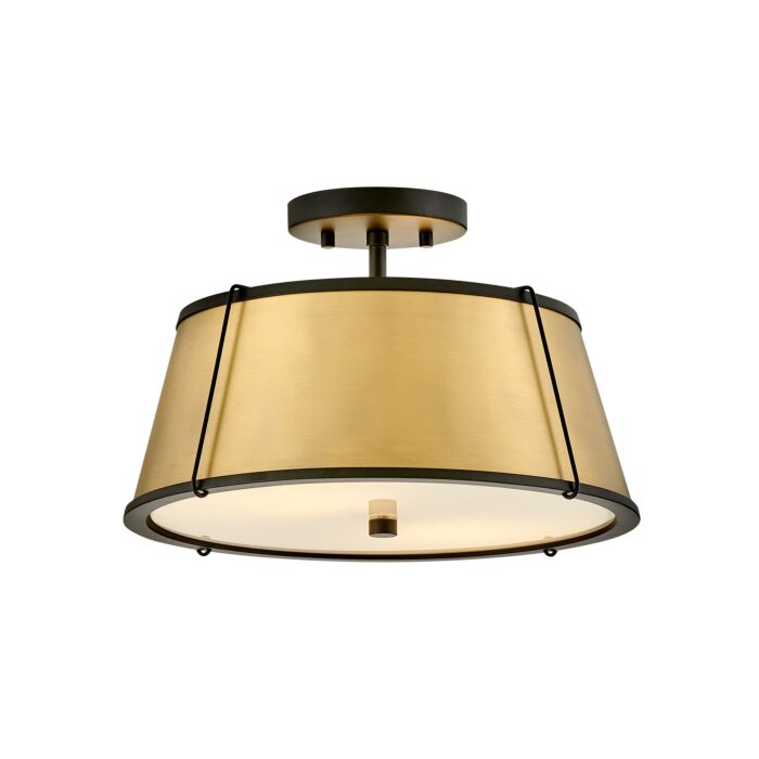 Clarke 2-Light Medium Semi-Flush Mount Ceiling Light in Black with Lacquered Dark Brass accents