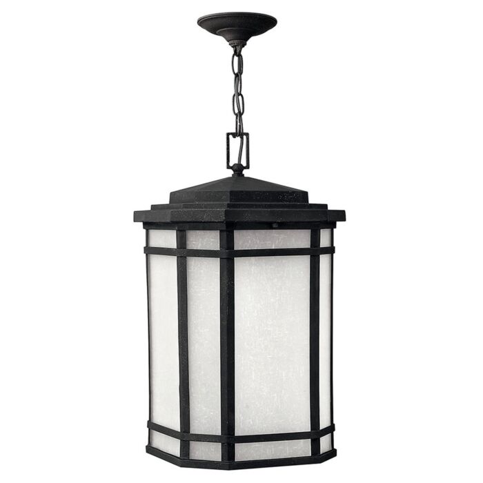 This 1-Light LED Hanging Lantern from Hinkley is part of the Cherry Creek collection. It comes in a Vintage Black finish.- Measures 20.75" H x 12.00" L x 12.00" W