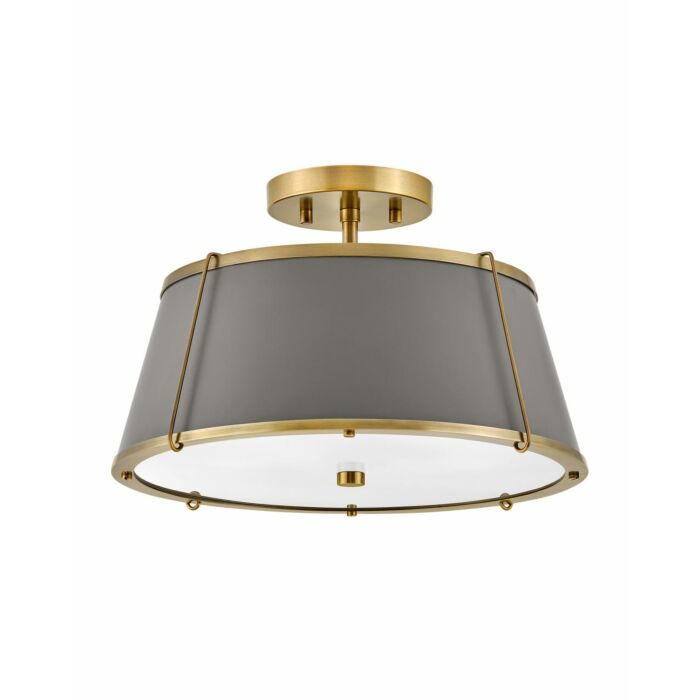 This 2-Light LED Semi-Flush Mount from Hinkley is part of the Clarke collection. It comes in a Lacquered Dark Brass finish.- Measures 9.25" H x 15.00" L x 15.00" W