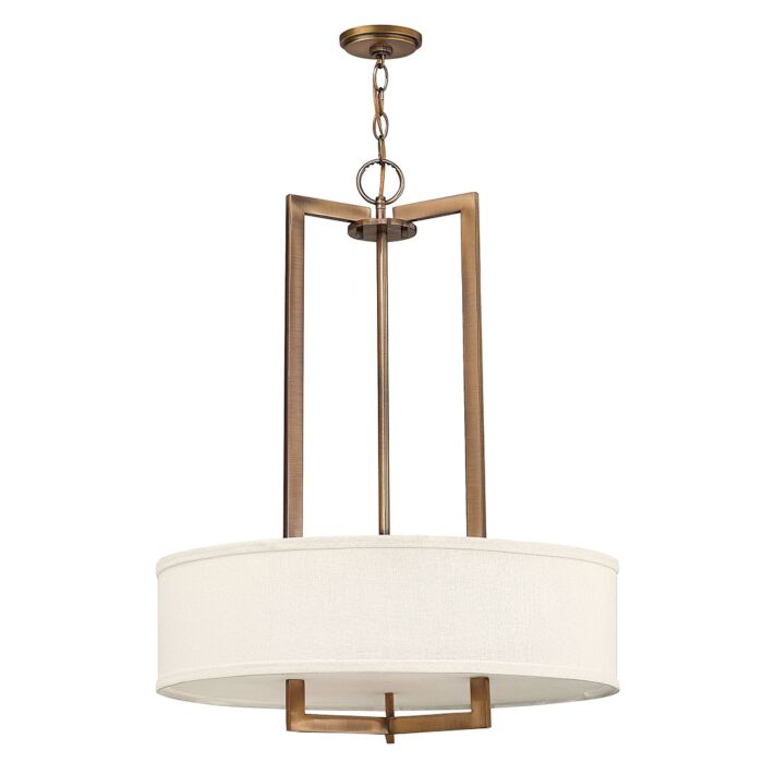 This 3-Light LED Pendant from Hinkley is part of the Hampton collection. It comes in a Brushed Bronze finish.- Measures 30.25" H x 26.00" L x 26.00" W