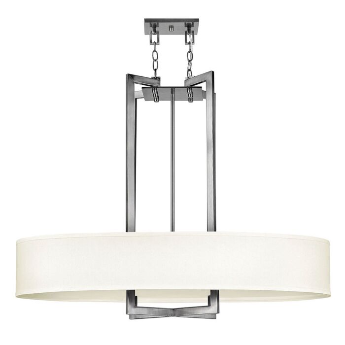 This 4-Light LED Pendant from Hinkley is part of the Hampton collection. It comes in a Antique Nickel finish.- Measures 31.25" H x 18.00" L x 40.00" W