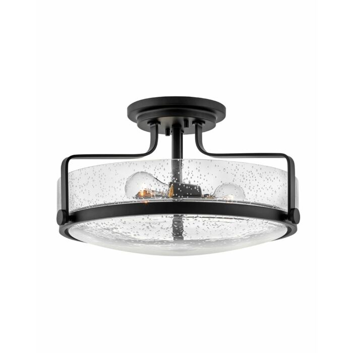 Hinkley Harper 3-Light Semi-Flush Ceiling Light In Black With Clear Seedy Glass