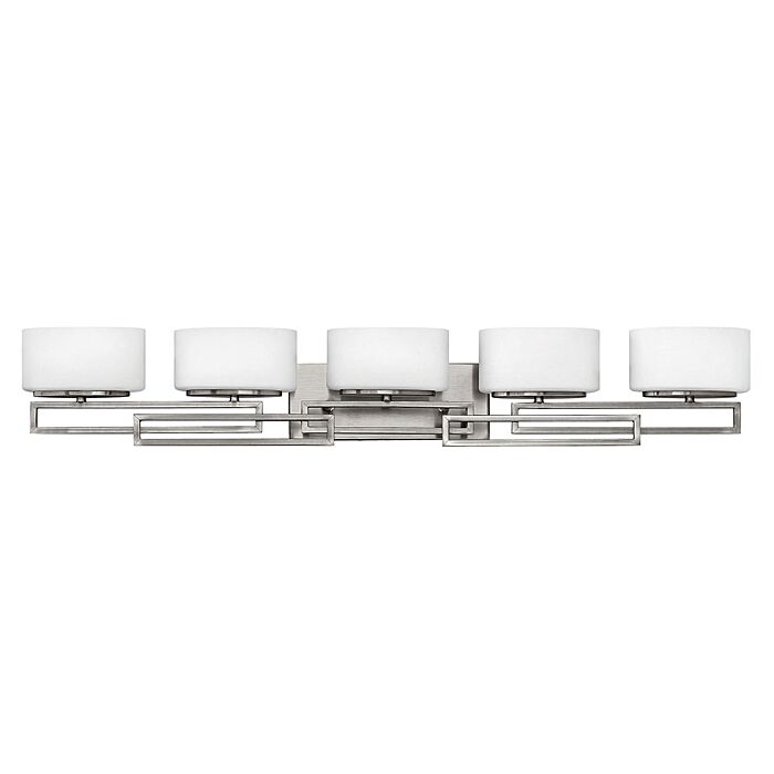 This 5-Light Five Light Bath from Hinkley is part of the Lanza collection. It comes in a Antique Nickel finish.- Measures 6.75" H x 5.00" L x 43.00" W