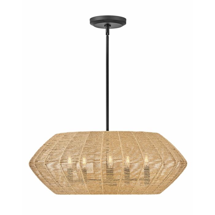 Hinkley Luca 5-Light Chandelier In Black With Camel Rattan Shade