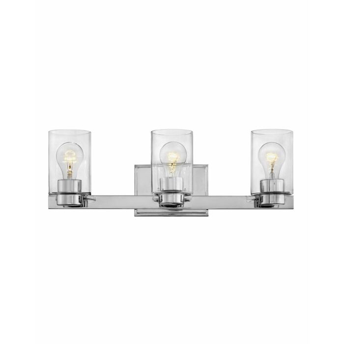 Hinkley Miley 3-Light Bathroom Vanity Light In Chrome With Clear Glass