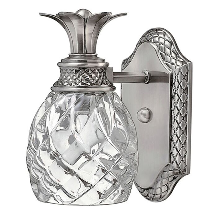 A Hinkley classic, the ornate Plantation collection features exceptional pineapple-shaped, clear optic glass that makes a noble statement. The elaborate, decorative cast detailing is accentuated by its lush finish.