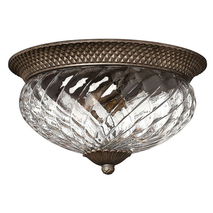 This 3-Light LED Flush Mount from Hinkley is part of the Plantation collection. It comes in a Pearl Bronze finish.- Measures 8.75" H x 16.00" L x 16.00" W