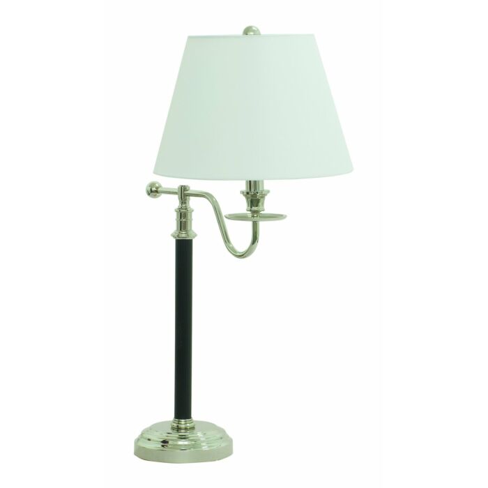 This Bennington 1-Light Table Lamp in Black With Polished Nickel is manufacturered by House of Troy- Measures 28.5"H x 12.50" W