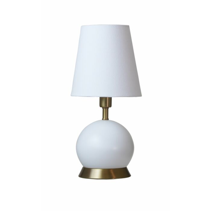 This Geo 1-Light Table Lamp in White With Weathered Brass Accents is manufacturered by House of Troy- Measures 12"H x 6.00" L x 6.00" W