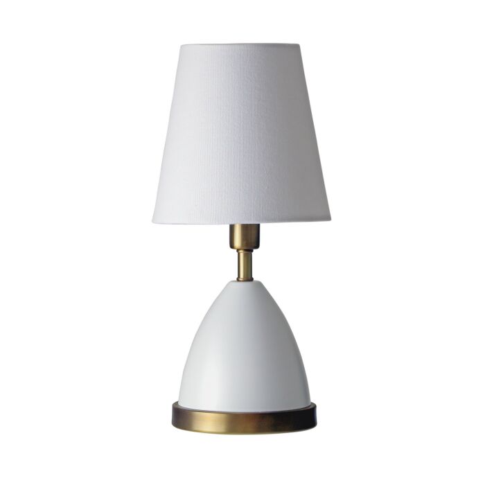 This Geo 1-Light Table Lamp in White With Weathered Brass Accents is manufacturered by House of Troy- Measures 12"H x 6.00" L x 6.00" W