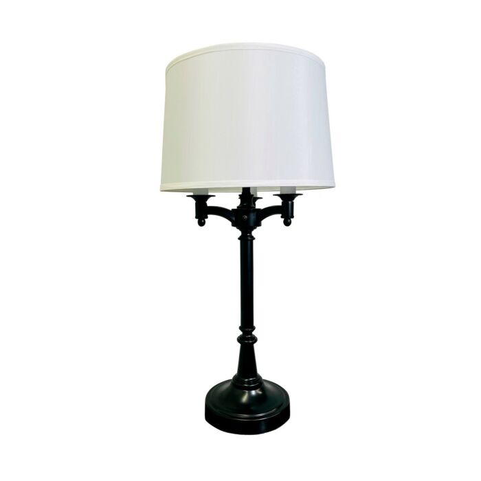 Add a touch of timeless elegance to your decor with the House of Troy Lancaster 1-Light Table Lamp in Black, a traditional piece from the Lancaster collection. ETL certified and constructed from robust metal, this table lamp ensures both safety and durability. It features a standard E26 bulb base, offering compatibility with a wide range of bulbs. The lamp's unique design allows you to use one 150W 3-Way bulb and three 75W Type A bulbs for maximum light output. The convenient 3-way switch lets you customize the lighting to suit various moods and activities. The black finish adds a classic and sophisticated element to your room.