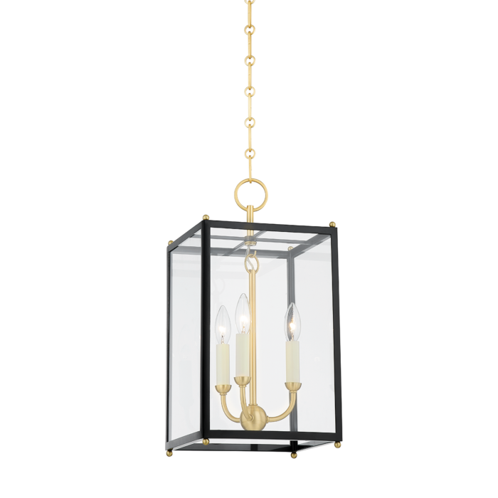 This 3-Light Lantern from Hudson Valley Lighting is part of the Chaselton collection and comes in a Aged Brass finish.It measures 20 high x 10" wide. This fixture uses 3 E12 Candelabra Base bulb(s). Bulbs not included. UL Damp rated. Can be used in humid environments like bathrooms or covered outdoor areas. Product Specification Sheet