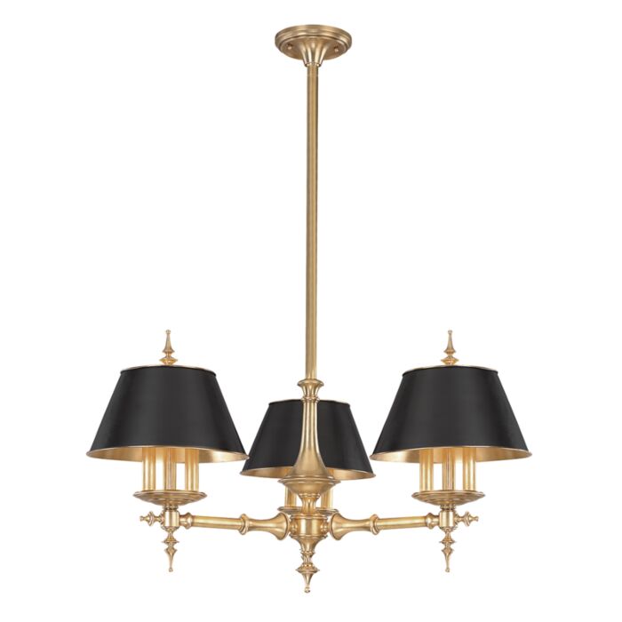 Elegant candlestick silhouettes meet ornate details in Cheshire's sophisticated design. A striking contrast of matte black shades against rich cast metal creates a bold statement. Coordinated interior shades enhance the warm tones of our expertly finished Aged Brass and Antique Nickel.