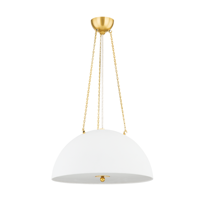 This 3-Light Pendant from Hudson Valley Lighting is part of the Chiswick collection and comes in a Aged Brass finish.It measures 12 high x 20" wide. This fixture uses 3 E26 Medium Base bulb(s). Bulbs not included. UL Damp rated. Can be used in humid environments like bathrooms or covered outdoor areas. Product Specification Sheet