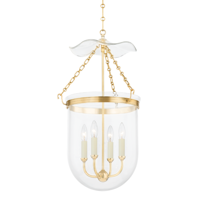 This 4-Light Lantern from Hudson Valley Lighting is part of the Rousham collection and comes in a Aged Brass finish.It measures 28 high x 16" wide. This fixture uses 4 E12 Candelabra Base bulb(s). Bulbs not included. UL Damp rated. Can be used in humid environments like bathrooms or covered outdoor areas. Product Specification Sheet