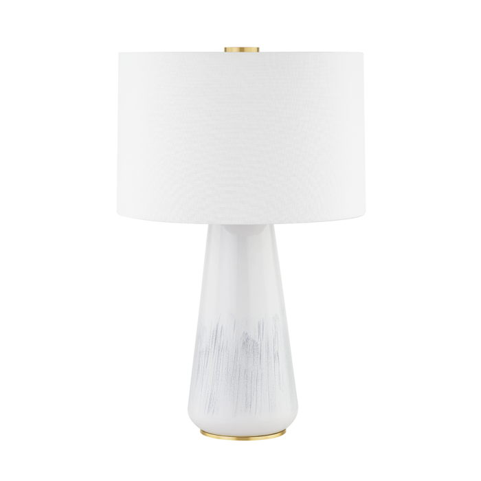 This 1-Light Table Lamp from Hudson Valley Lighting is part of the Saugerties collection and comes in a AGED BRASS with GLOSS WHITE ASH CERAMIC finish.It measures 26 high x 16" wide. This fixture uses 1 E26 Medium Base bulb(s). Bulbs not included. UL Dry rated. Can be used in dry environments like living rooms or bedrooms. Product Specification Sheet