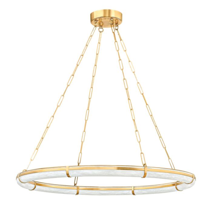This 1-Light Chandelier from Hudson Valley is part of the Sennett collection. It comes in a Aged Brass finish.- Measures 2.75" H x 42.00" L x 42.00" W