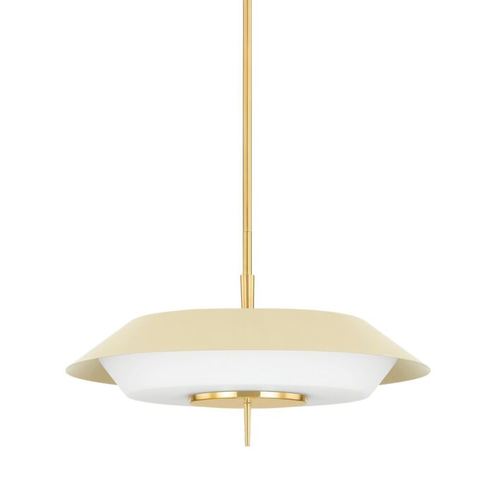 This 4-Light Pendant from Hudson Valley is part of the Westport collection. It comes in a Aged Brass/ Soft Sand finish.- Measures 11.00" H x 24.00" L x 24.00" W