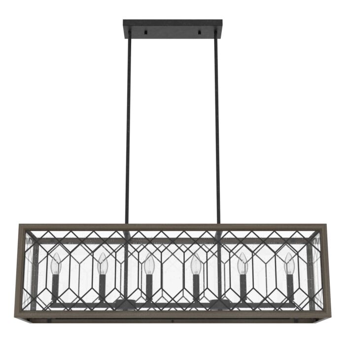 Short Description: Gather around the table under the warm light of the Chevron 6 light linear chandelier. This fixture invites everyone to relax and settle in under its beguiling glow. The metal and glass create a lovely lattice design, and the wood-inspired frame adds a modern flair. The Chevron collection brings a cozy atmosphere to your space.