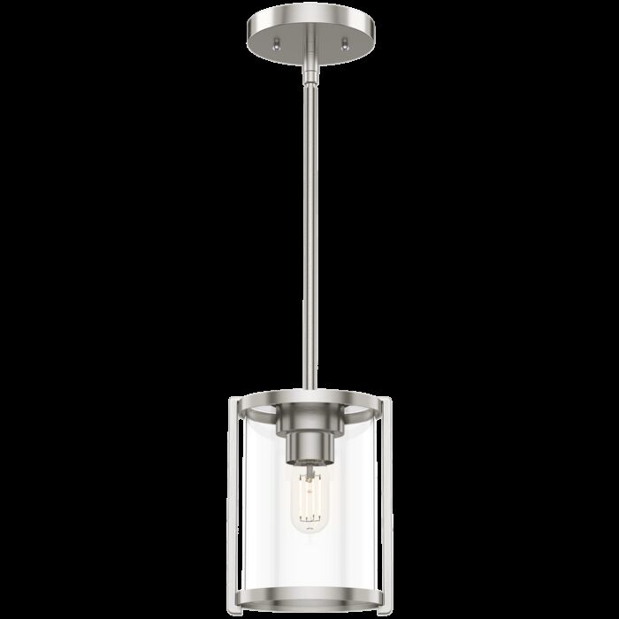 Hunter Astwood 1-Light Mini Pendant in Brushed NickelThe simple, rounded cage design of the Astwood modern pendant light is balanced by strong lines and timeless finishes. Thoughtful and subtle art deco detailing in the design of the Astwood mini pendant is effortless and stunning. This mini pendant lighting pairs with the rest of the Astwood Collection, including ceiling fans, to give your home a cohesive, classic touch.