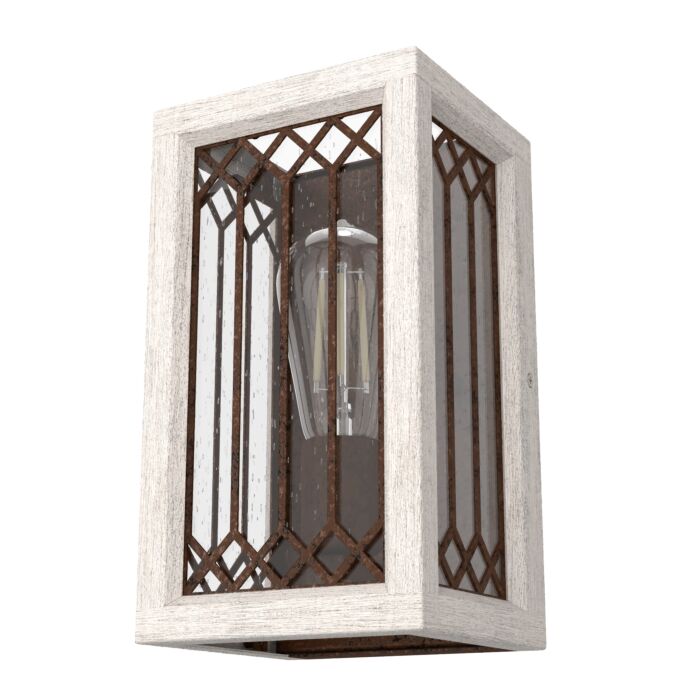 Light up your entryway or living spaces with charm. The Chevron wall sconce is a versatile and lovely fixture. Wood-inspired frame with a glass and metal detail this light will add a cozy atmosphere to your space and highlight the features you love most. Mix and match with other fixtures from this collection or from our ceiling fan designs.