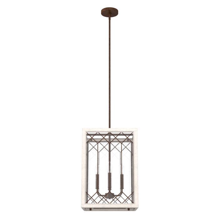 Hunter Chevron 4-Light Lantern in Textured RustCreate a cozy atmosphere with the Chevron 4 light lantern. The craftsman style of this fixture features metal and glass with a lattice design that gives a cottage feel. The geometric lines and make this a conversation piece to hang in your entryway or kitchen to update your casual traditional style. The Chevron collection is a charming addition to your space.