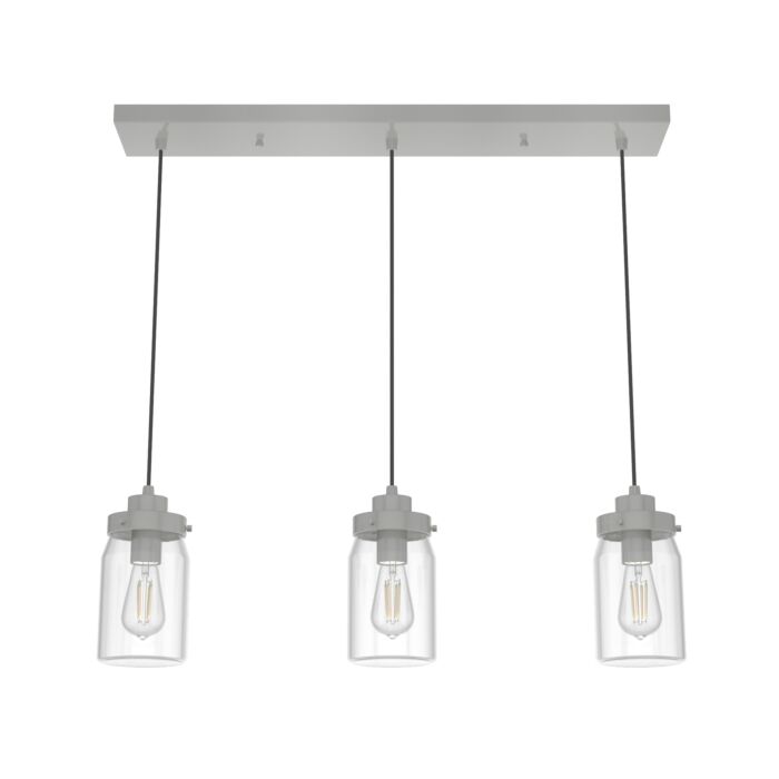 Hunter Devon Park 3-Light Cluster Linear in Brushed NickelSubtle rustic detailing perfect for farmhouse spaces. Ball jar inspired glass shades on the Devon Park linear cluster light complete the look of coastal and farmhouse style spaces. Tailor the look for your space by varying the height of the mini pendant lights to fit your needs and style. Mix and match with other fixtures from this collection or from our ceiling fan designs.