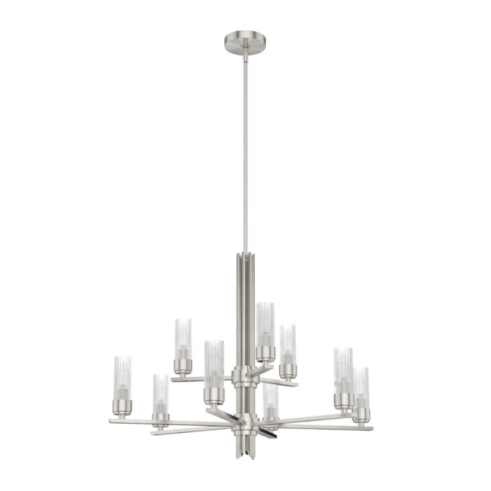 Hunter Gatz 9-Light 2-tier Chandelier in Brushed NickelCreate a sensation with the flick of a switch. The Gatz chandelier is the epitome of elegance and glamour. The multiple fluted glass shades and metal finish are lovely by day but stunning at night. You can add sparkle throughout your space with other lights from the collection.Mix and match with other fixtures from this collection or from our ceiling fan designs.