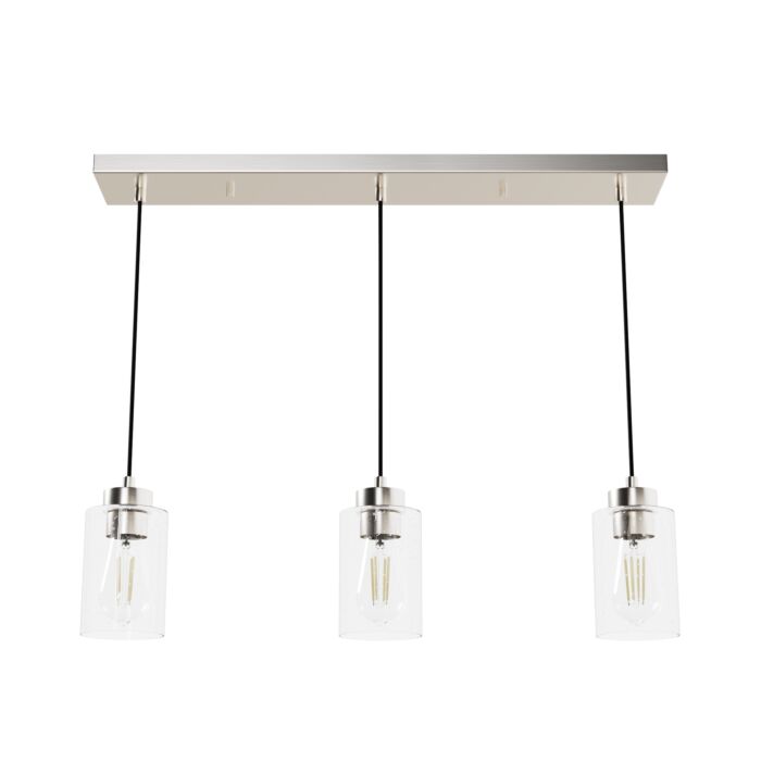 Hunter Hartland 3-Light Linear Cluster in Brushed NickelThe Hartland collections always satisfy your taste for understated design, and the Hartland 3-Light Cluster is no exception. With clear-seeded glass pendants and your choice of metallic finishes, this light shines beautifully, creating a unique glow in your space. Over your kitchen island or in an entryway, this light will enhance your style! Check out other lights from the collection or the Hartland fan to create a relaxed and welcoming atmosphere.