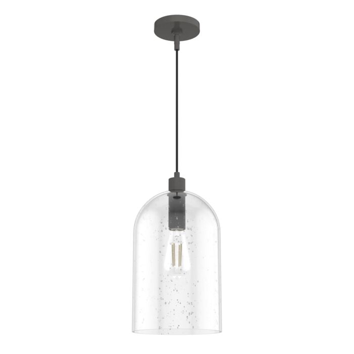 Hunter Lochmeade Clear Seeded Glass 1-Light Large pendant in Noble Bronze