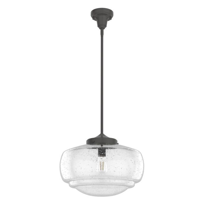 Hunter Saddle Creek Clear Seeded Glass 1-Light Pendant in Noble Bronze