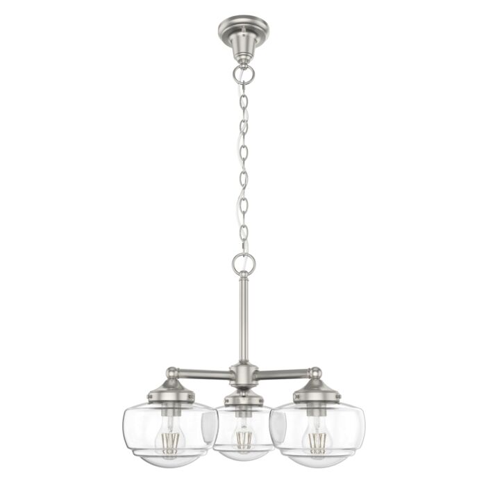 Hunter Saddle Creek Clear Seeded Glass 3-Light Chandelier in Brushed Nickel
