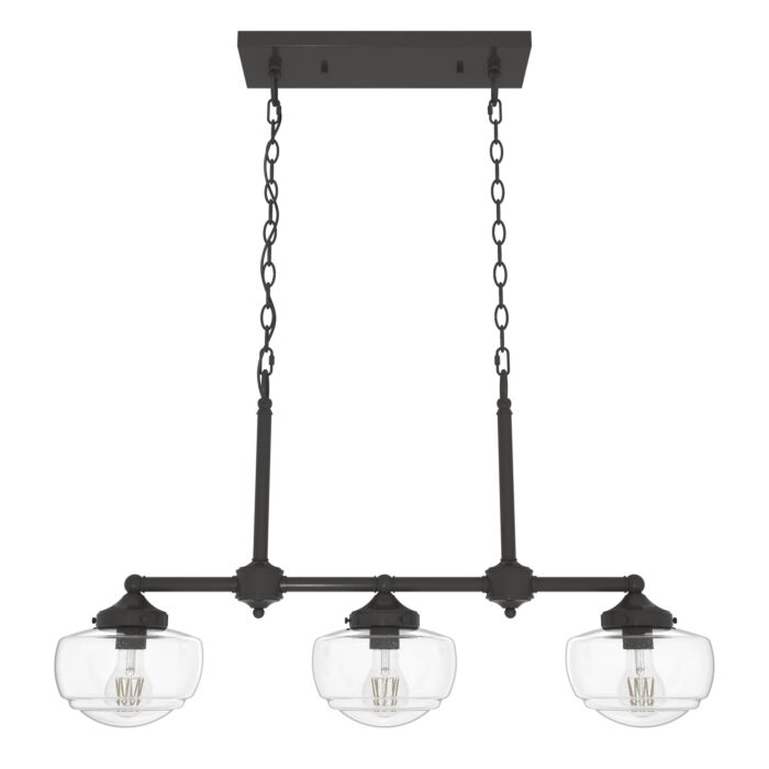 Hunter Saddle Creek Clear Seeded Glass 3-Light Linear Chandelier in Noble Bronze