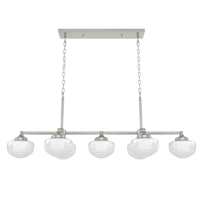Hunter Saddle Creek Shiny Cased White Glass 7-Light Linear Chandelier in Brushed Nickel