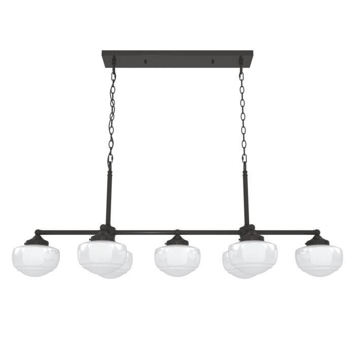 Hunter Saddle Creek Shiny Cased White Glass 7-Light Linear Chandelier in Noble Bronze