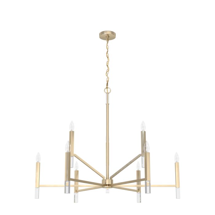 Hunter Sunjai 9-Light 2-tier Chandelier in Alturas GoldUplift your homes lighting aesthetic with the Sunjai tiered chandelier, featuring nine individual lights that evoke the classic glow of a candelabra, with a modern edge. The Sunjais casual geometry is offset by elegant shimmering adornments at the base of each light and the fixtures overarching clean, modern design, adding a touch of glam to. Brighten up gatherings with the Sunjai tiered chandelier.