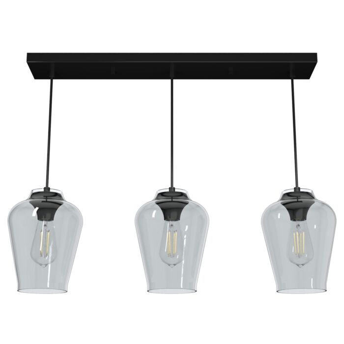 Hunter Vidria Smoked Glass 3-Light Linear Pendant Cluster in Matte Black