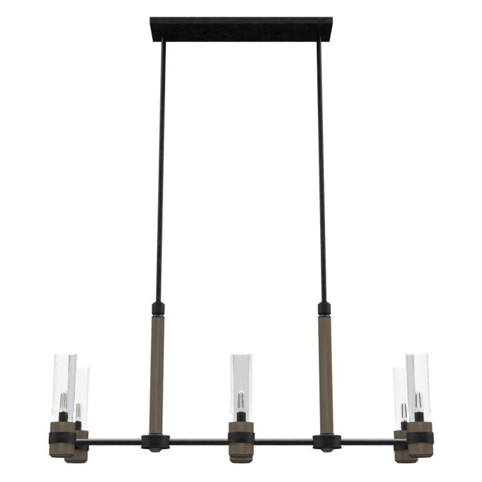 Short Description: The River Mill 6 light linear chandelier has reinvented the look of lodge lighting! The simple scaled-down fixture incorporates rustic wood-inspired and metal elements and adds glass and sleek form for a modern edge on a classic style. Over your dining table, this fixture will cast a lovely glow that will make your guests feel at home. Add other lights from the River Mill collection to spread the charm and create a cohesive style.