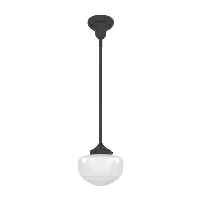 Short Description: Traditional design. Elevated elements. The Saddle Creek mini pendant draws inspiration from the iconic American schoolhouse light but adds an updated touch with subtle detailing in the glass shade. For those who want all-in-one light fixtures, this schoolhouse-inspired mini pendant can also be installed as a semi-flush mount lighting. Mix and match with other fixtures from this collection or from our ceiling fan designs.