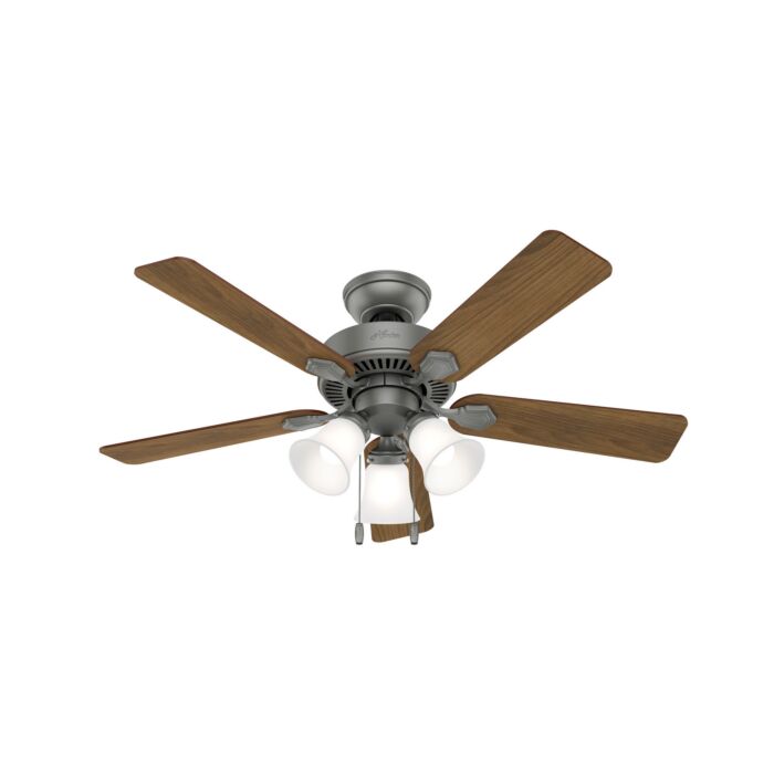 This 3-Light 44" Ceiling Fan from Hunter is part of the Swanson collection. It comes in a Matte Silver finish.- Measures 16.93" H x 44.00" W
