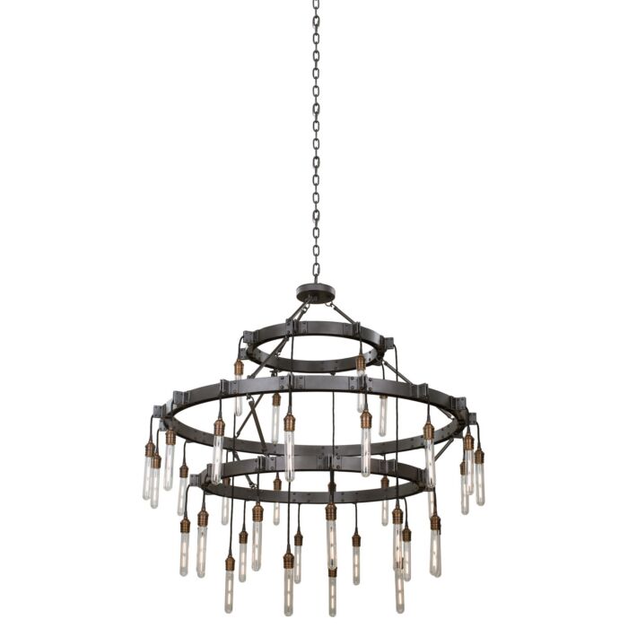 This Stuyvesant 36-Light Chandelier in Matte Gun Metal is manufacturered by Kalco- Measures 45"H x 48.00" W