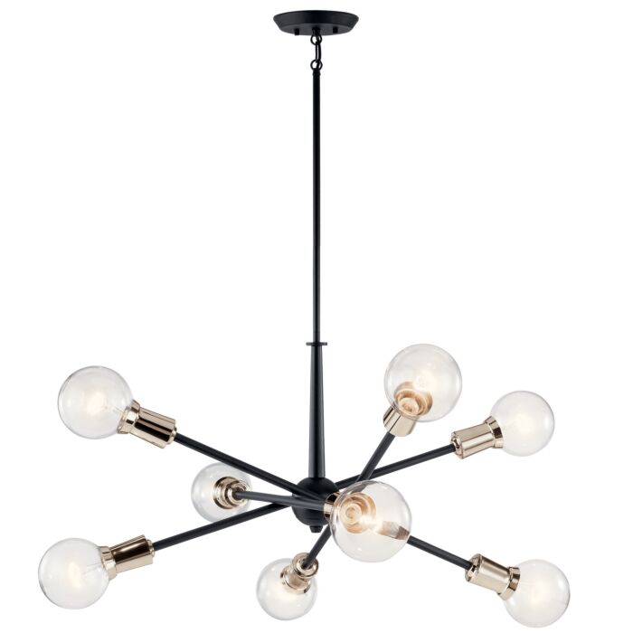This Armstrong 8-Light Chandelier in Black is manufacturered by Kichler- Measures 26"H x 30.00" W