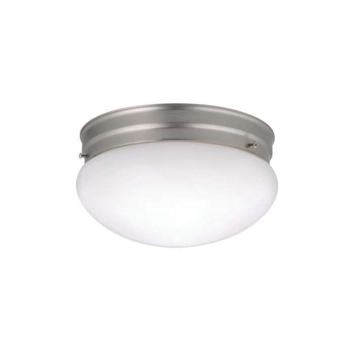 Elevate your space with this sleek, modern ceiling light, boasting a 9 1/2" diameter and a stylish Brushed Nickel finish paired with a crisp white glass shade. Perfect for adding a touch of sophistication, it accommodates two 60-watt (max.) bulbs.