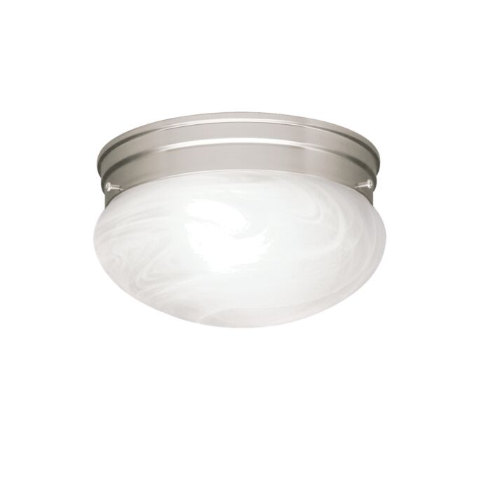 Elevate your space with this understated 2-light ceiling fixture. Its sleek Brushed Nickel finish pairs perfectly with the soft, warm glow of Alabaster swirl glass shades, creating a cozy ambiance that's perfect for any room.