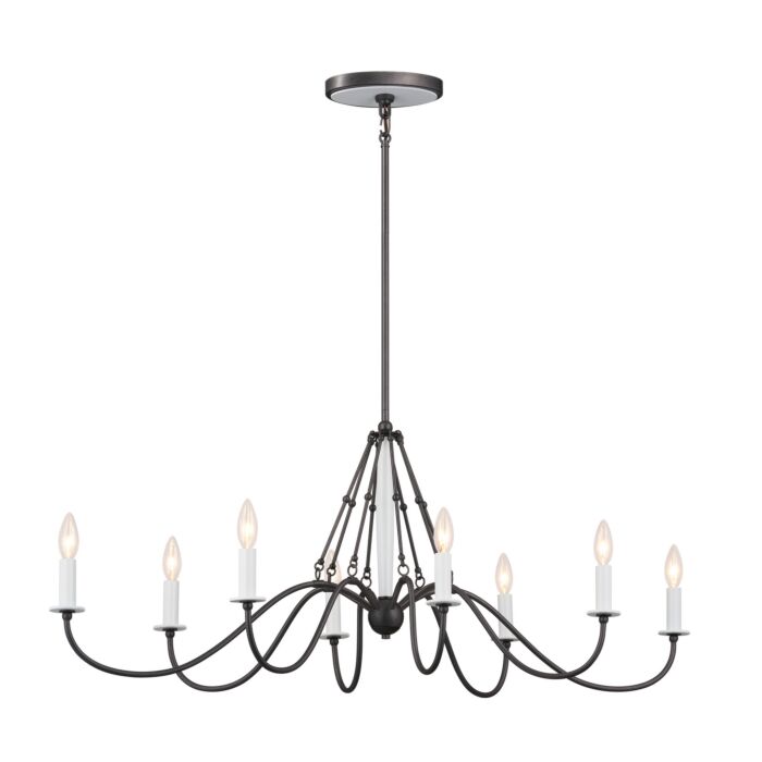 This Freesia 8-Light Chandelier in Anvil Iron is manufacturered by Kichler- Measures 18"H x 44.50" L x 20.00" W